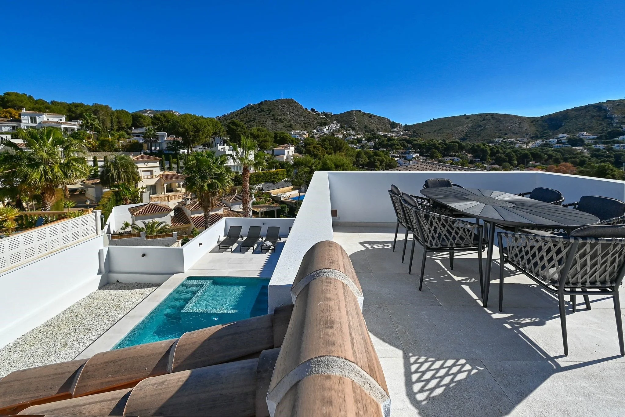 Experience breathtaking views of the Spanish countryside from the upper floor terrace of our villa. Overlooking the outdoor pool and stunning surroundings, the terrace is the perfect place to relax and unwind while taking in the picturesque scenery. Whether you're enjoying a morning coffee or a glass of wine at sunset, the terrace is the ultimate place to soak in the beauty of the surrounding landscape and create unforgettable memories.